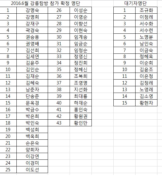행사/소식 강릉문화탐방 추첨결과 안내 작성자: 관리자 등록일: 2016-06-13 조회수: 680 이전글 2016.제18회 노원청소년예술제 노원구청장상 수상자 공적조서 제출안내 다음글 3분기 시창작반 개강일 변경안내(7월11일) 목록