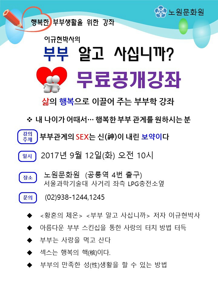 행사/소식 <무료공개강좌>부부 알고사십니까?? (2017.9.12 화 10시) 작성자: 관리자 등록일: 2017-08-29 조회수: 484 이전글 문화강좌 수강료 감면 안내 다음글 <무료공개강좌>부동산 재테크 (2017.9.19 화 10시) 목록